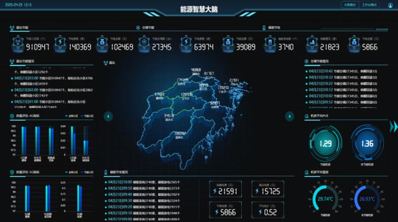在基站设备和电源设备方面温州移动创新采用“动态休眠+储能替代”组合方案。通过MR测量与AI大数据分析,将4G/5G基站节能时段从夜间延展至全天低负荷时段,针对校园、交通干线等场景定制节能方案,全网超12万个小区实现24小时自动化智慧节能。在储能领域,将老旧铅酸电池升级为铅碳储能系统,通过动态均衡、充放电管理等技术手段,延长电池寿命并提升能效,结合峰谷电价策略,减少基站电费的支出,整体降低公司运营成本。