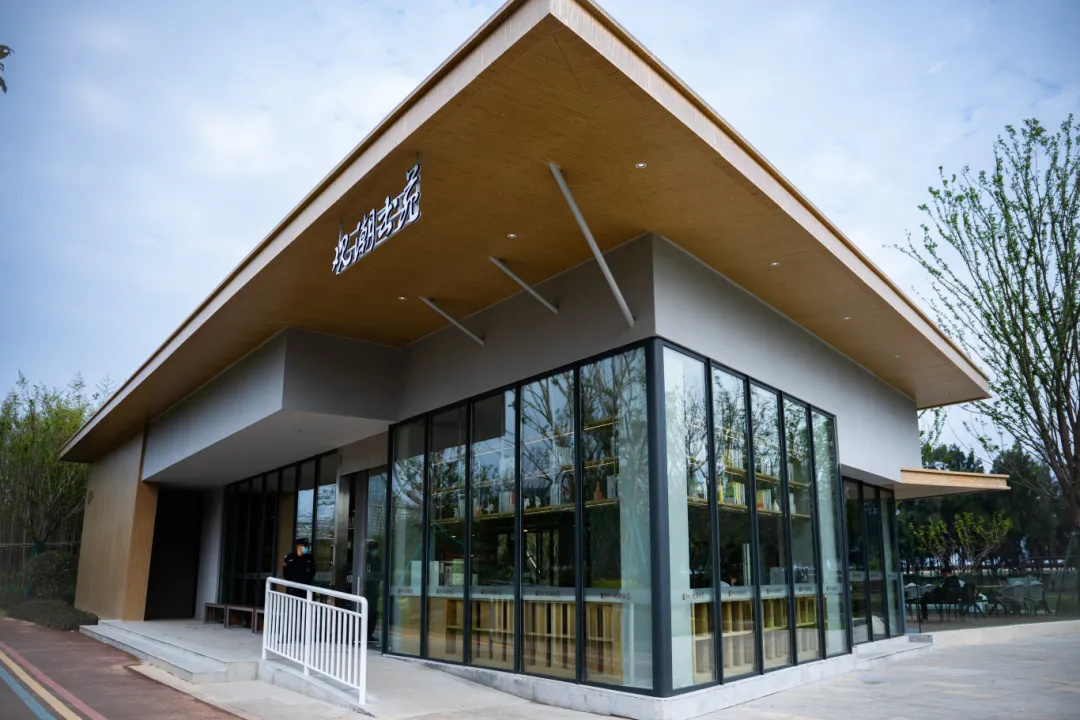 观潮书苑旅游驿站位于乐清市胜利塘公园,建筑面积240平方米,藏书1万册。驿站充分利用胜利塘公园自然幽静的特点,采用“对自然打开”的空间设计概念,设置了600平方米城市露营基地,定期推出音乐弹唱会、露天电影、文化体验等系列活动,打造了游、学、娱全方位综合性营地空间。