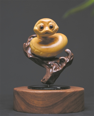 木主木雕推出的新作《蛇年太阳能》。受访者供图