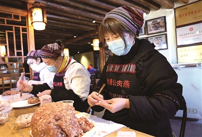 为推广矾山肉燕,当地还设置了肉燕文化展示区、制作体验区等多功能区域,接待前往观光的游客。如今,矾山肉燕这只“金燕子”飞向全国各地,线上销量年增长超20%。