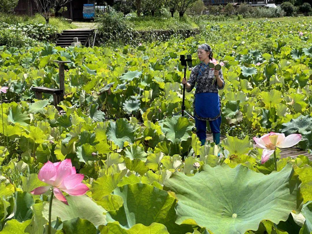 文成武阳新鲜莲子采摘,助农主播现场力推农产品。蒋文广 摄