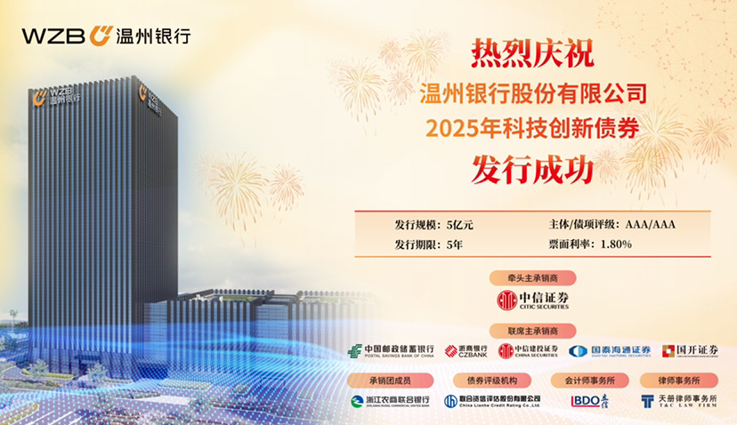 以金融活水润泽科创沃土 温州银行科技创新债券圆满发行