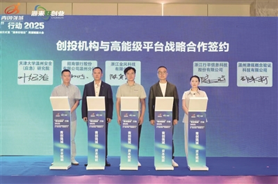 为创业项目引入“金融活水”是优化创新生态的关键一环。近日,2025温州创业资源对接服务季系列活动启幕,现场温州市大罗山基金村与上海证券、长江证券、国元证券达成战略合作,招商银行温州分行、浙江行早信息科技等金融创投机构与天津大学温州安全(应急)研究院、浙江金风科技、温州津瓯概念验证科技有限公司等主体签署合作协议,推动“金融-科技-产业”深度融合。