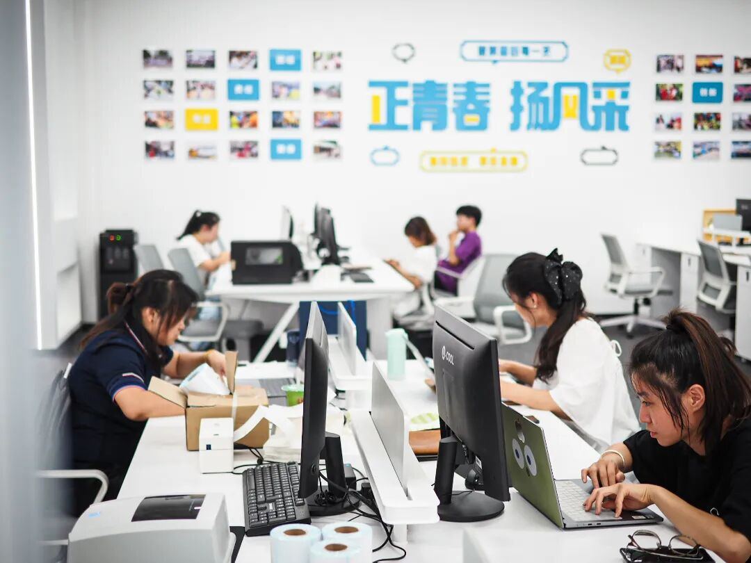 腾蛟镇是“中国笔记本之乡”,拥有成熟的印刷笔记本产业链。而腾蛟文创文具电商产业园的核心优势,在于将这条产业链与电商生态深度融合。为应对双十一订单高峰,园区共享供应链车间已全面升级——生产线24小时运转,可同时为10余家企业代工生产;整合上下游资源形成的“共享资源池”,能提供从设计、打样到物流配送的全流程服务,企业无需自建工厂,便可快速将创意转化为产品。