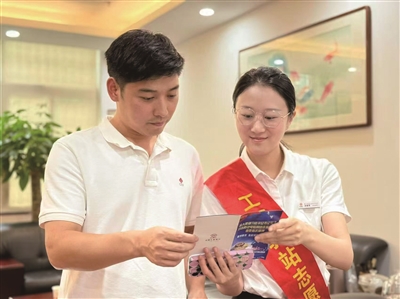 ?中行温州市分行营业部员工为客户讲解金融知识,提供金融服务。