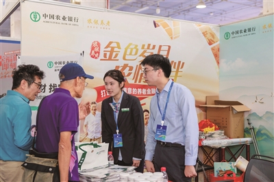 ▲在首届温州康养时尚生活博览会上,农行温州分行营业部向市民介绍养老金融产品。