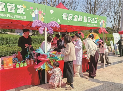 ▼温州银行总行营业部工作人员走进惠美社区世纪公园开展金融宣教志愿服务。