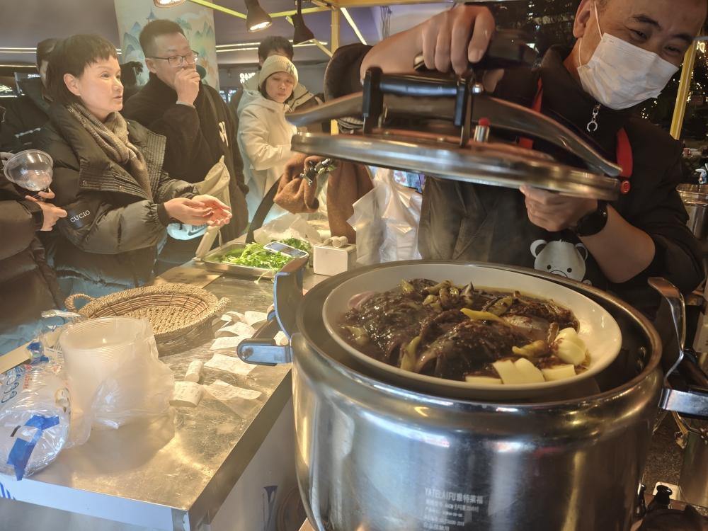 元旦假期,这里更是迎来消费热潮:在秘制鱼头摊位,每晚百余个鱼头早早售罄;在手打柠檬茶摊位,单日销量突破400杯……