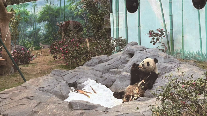 随着气温逐日下降,喜冷怕热的双胞胎大熊猫活力十足,爬树嬉戏、玩“雪”互动,展现了其适应低温环境的习性,吸引了大批现场游客观赏。亚洲象获得了喜爱的红土进行“泥浴SPA”,鸣禽区加装了空中爬架,涉禽区铺设了更自然的粗砂垫料。这些举措不仅丰富了动物的生活,也让游客感受到人与自然和谐共处的氛围。
