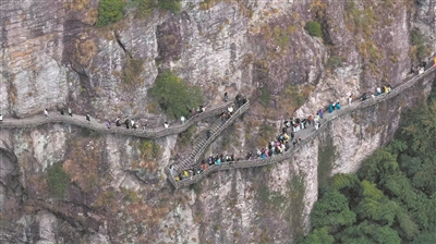 游客漫步雁荡山灵岩栈道。 胡安明 摄