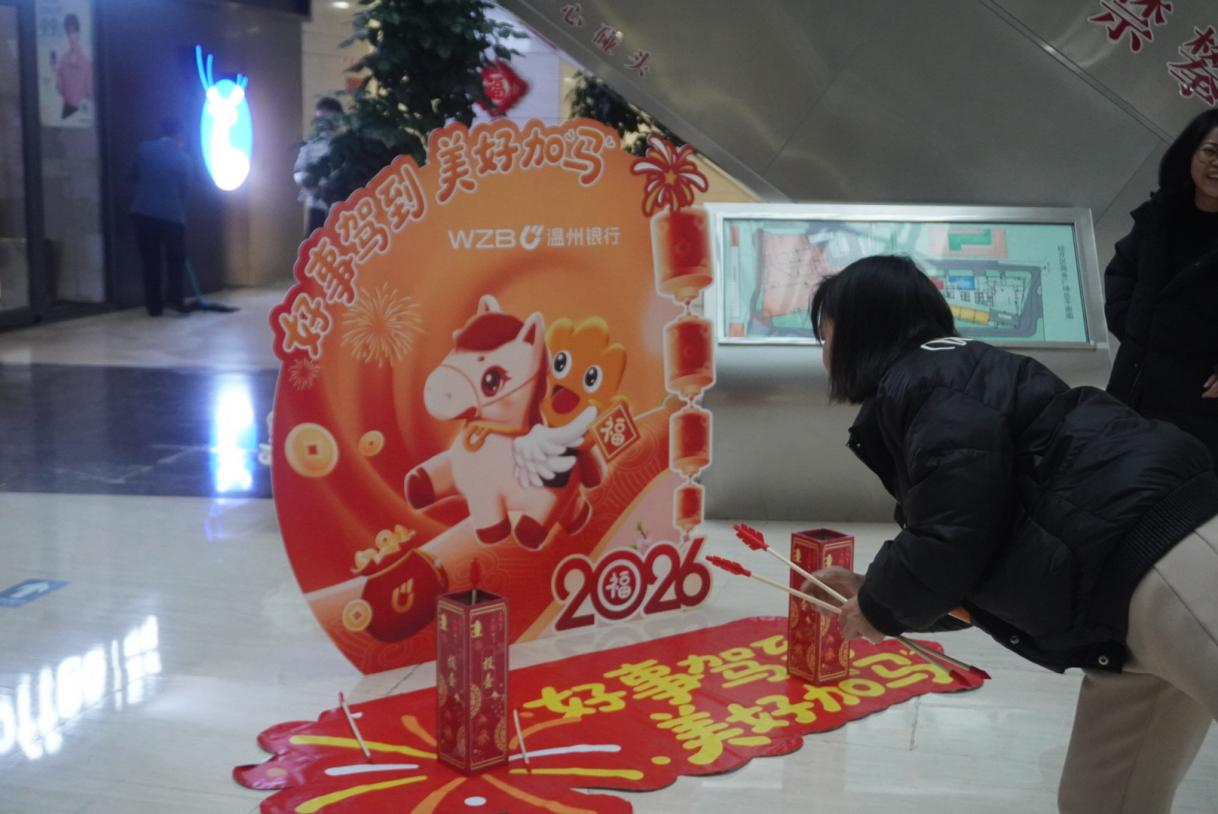 温州银行高新支行举办的趣味民俗游园会,吸引了往来人群的驻足参与。投壶区有人屏息瞄准,有人为精彩投中鼓掌;书法台前,书法爱好者提笔写福,红纸黑字映着专注的脸庞;一旁热气腾腾的腊八粥摊位排起小队,红豆、桂圆、糯米慢熬成香甜软糯的一碗,捧在手心暖意直透心底。传统游戏、笔墨祝福、时节美食,每一处都承载着记忆与情感,让忙碌的现代人在烟火气中,触摸到绵延不绝的文化温度。