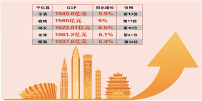 原标题:乐清领跑7年 平阳领衔“后备军” 温州“千亿县”扩容至5席 瓯海新晋