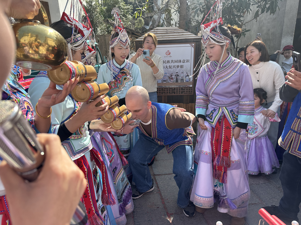 “洋新郎”打卡畲乡年 文成民俗新春引客来