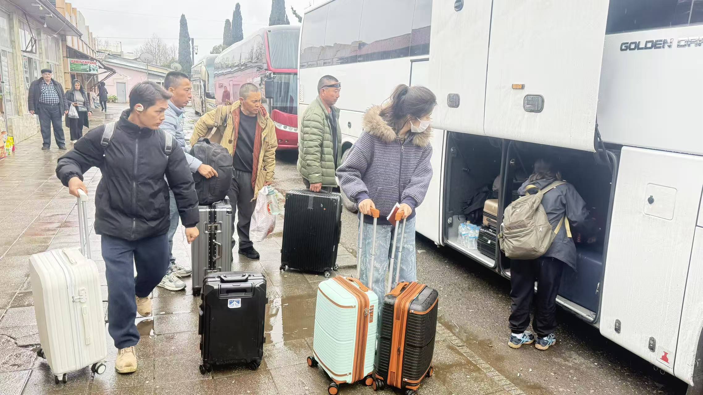 撤离后的同胞准备登上大巴前往阿塞拜疆首都巴库