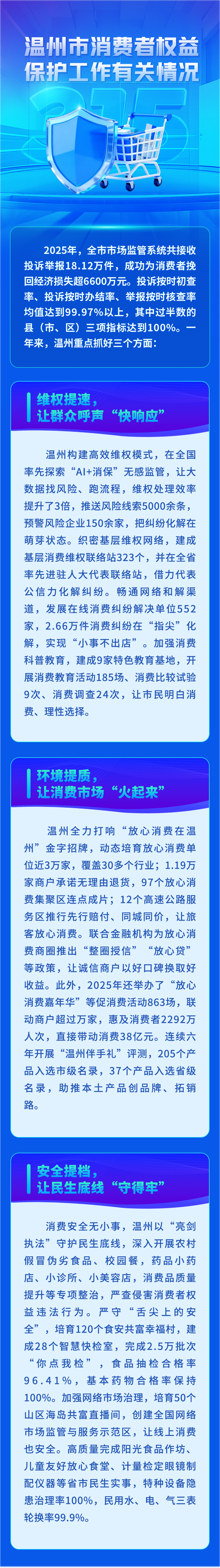 2026年是“十五五”开局之年,也是我市“万亿之城”再出发的关键一年,今年消费维权的年主题是“提升消费品质”,温州将围绕促进消费供给提质、加快消费维权提效、推动消费环境优化等三方面开展三大行动:
