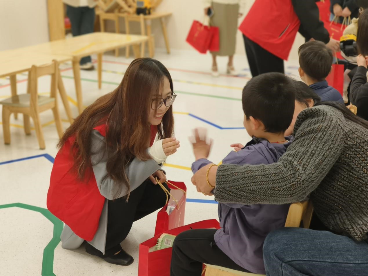 活动中,志愿者在中心执行校长的专业讲解下,深入了解孤独症儿童学前教育现状与成长需求,为精准开展关爱服务打下基础。之后,志愿者化身一对一助教,全程辅助教学,用耐心与专注陪伴孩子们学习成长,以沉浸式陪伴传递真情,让特殊儿童在关爱中感受温暖与力量。