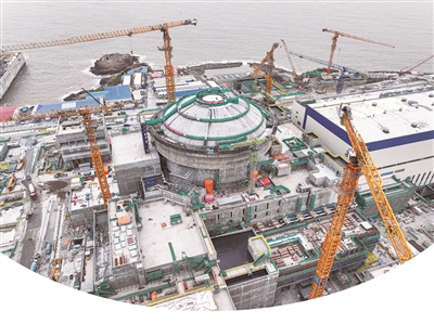 空中俯瞰在建设中的中广核浙江三澳核电项目1号机组。苏巧将 摄
